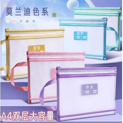 透明网格学科科目分类袋双层A4文件袋小学生试卷收纳袋拉链袋透明书袋课本分科学习资料手提袋 【双层女生款4个】